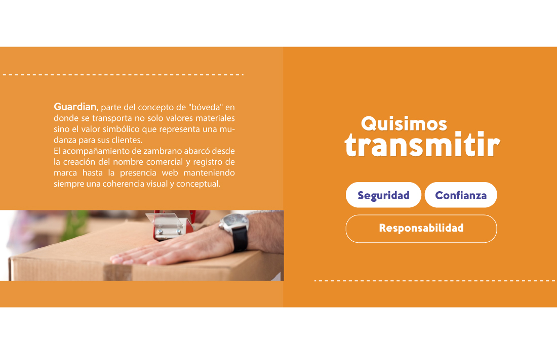 Guardián parte del concepto de «Bóveda» en donde se transporta no solo valores materiales sino el valor simbólico que representa una mudanza para sus clientes.