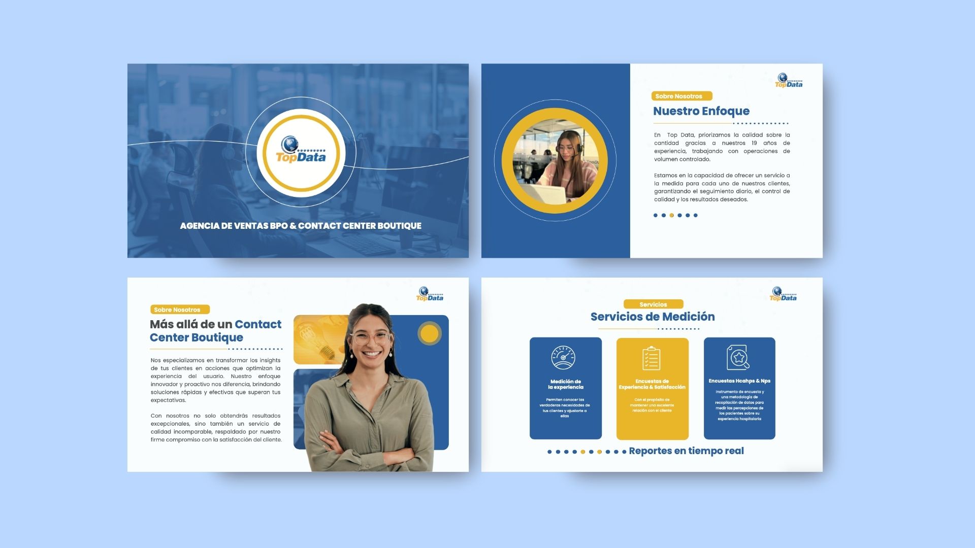 Desarrollamos una presentación y un sitio web para fortalecer la identidad y proyección del call center en mercados internacionales. Nuestro enfoque combinó diseño estratégico y comunicación efectiva, asegurando una presencia digital alineada con sus objetivos comerciales y su crecimiento global